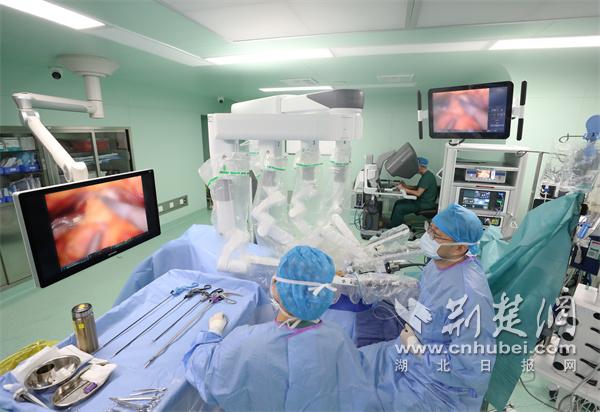 荆楚网(湖北日报)(记者林琳 通讯员李蓓、刘珊珊、马耀)手术室里,外科医生坐在操作台前,眼睛一目了然地盯着高分辨率的3D屏幕,双手轻轻握住操作杆,脚熟练地控制踏板,用手脚“遥控”手术台上的机器人。一只机械臂被轻轻插入患者体内,我看着四个“手臂”在狭小的腔内灵活转动、精准移动……这不是科幻电影中的场景,而是武汉市中心医院的例行手术。