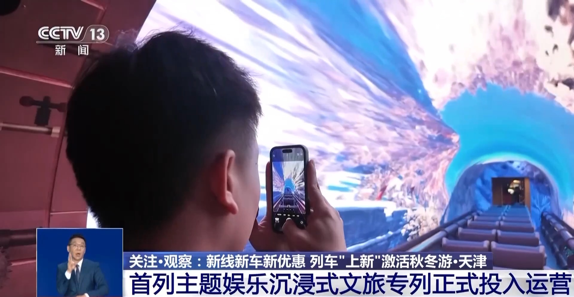 火车上看表演、看5D电影、体验非遗工艺品……这列创新文旅列车今天(30日)上午从天津北站出发,标志着首趟乡村主题游艺深度文旅列车正式开行。
