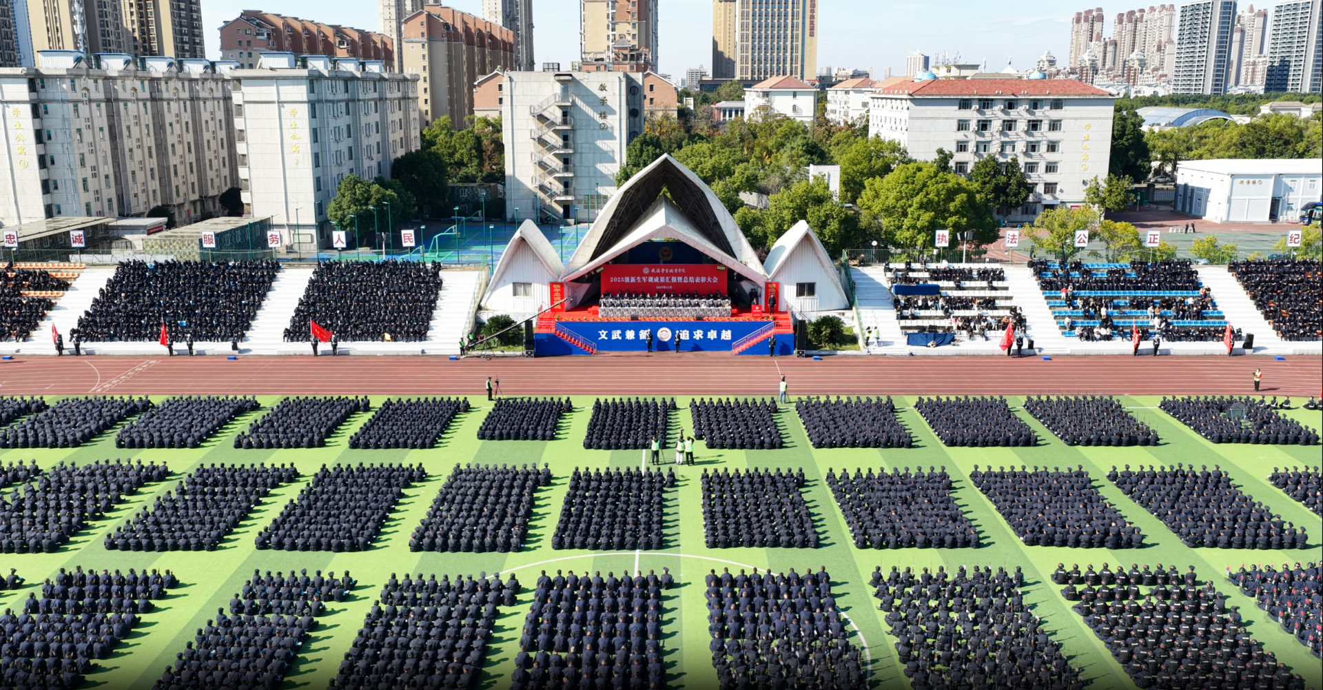 京中网讯(湖北日报网)(记者邱令鹏、通讯员周光杰、通讯员罗军、通讯员郭勤文)11月18日上午,武汉警察职业学院为2025名新生举行军训成果汇报暨总授牌仪式。经过60天的严格训练,来自全国各地的3828名新兵,以整齐的队形、昂扬的斗志、优良的作风,充分展示了军事训练的成果。